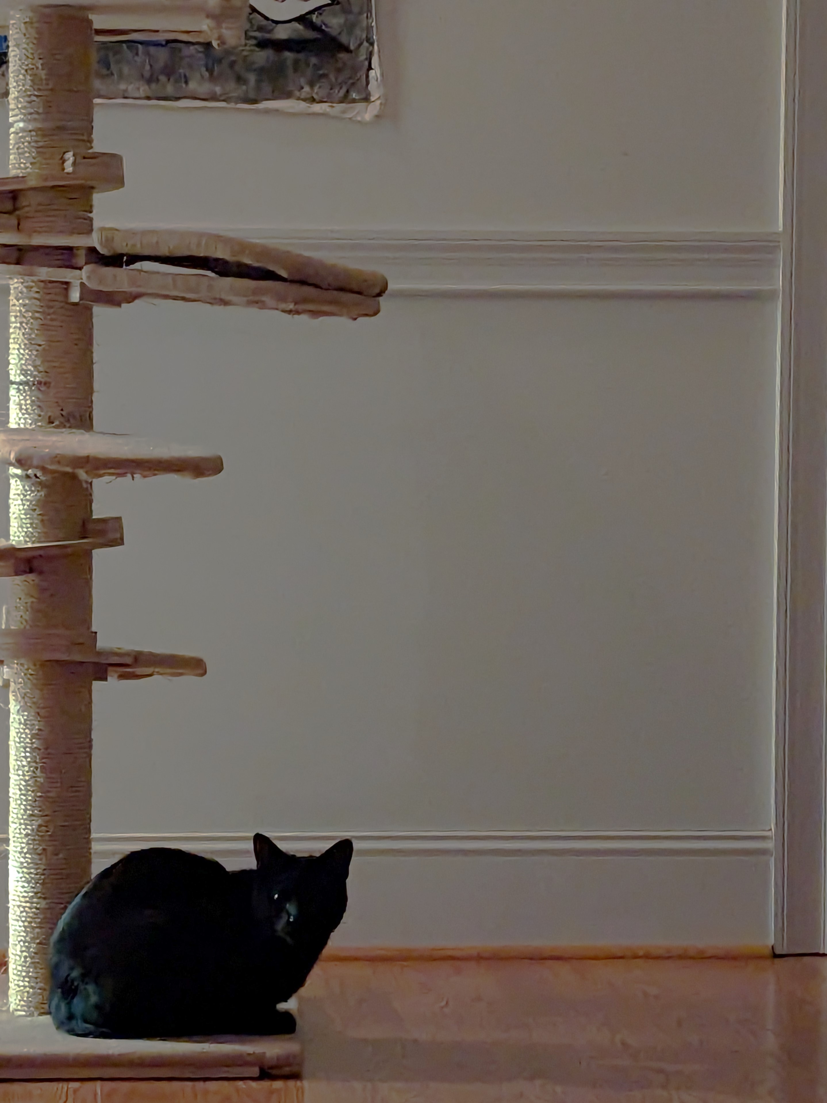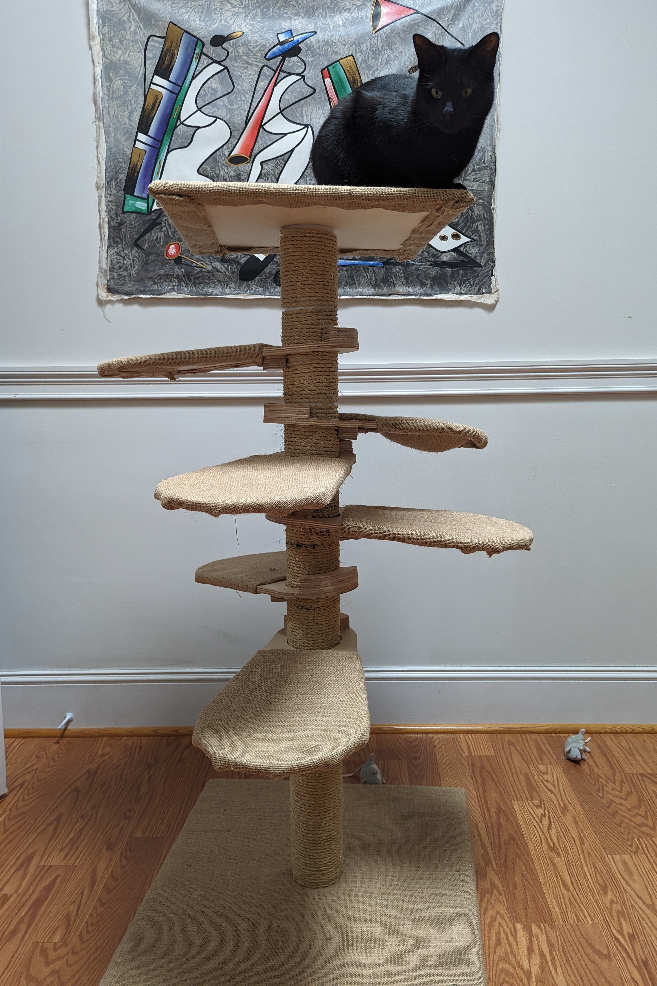 We were able to demonstrate the need for additional friction on the cleats as Boo, who has been testing a variety of Leaf Tree iterations since March 2023, took full advantage of the additional climbing/sitting/scratching/clawing/zooming space; and because we’re iterating in a very focused manner, we were able to design new Leafs, Trunks, and Tree Tops that could be easily interchanged or added to the original design (hence the upcoming Leaf Tree Mk1 V1.5).