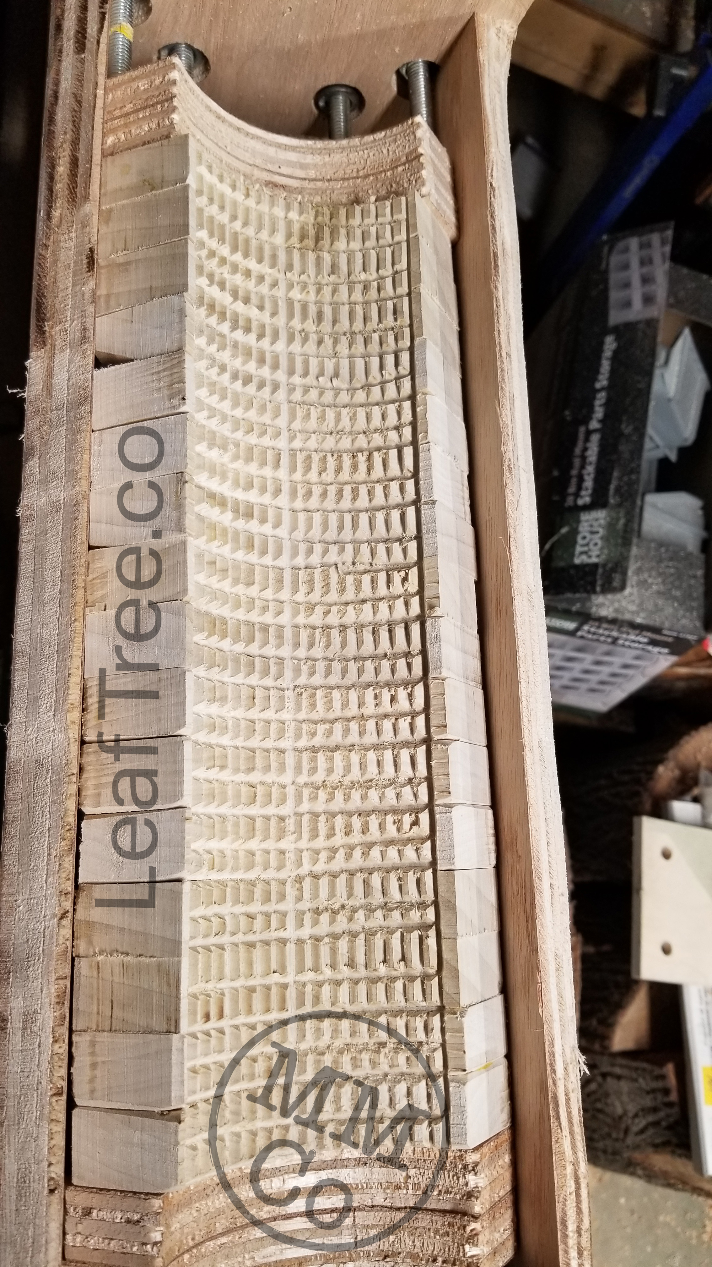 Once the cleats were cut and freed from the poplar board, they were stacked into our custom jig for teeth to be cut into them, and the upgrade from pine (a fairly soft wood) to poplar resulted in the most consistent teeth yet!