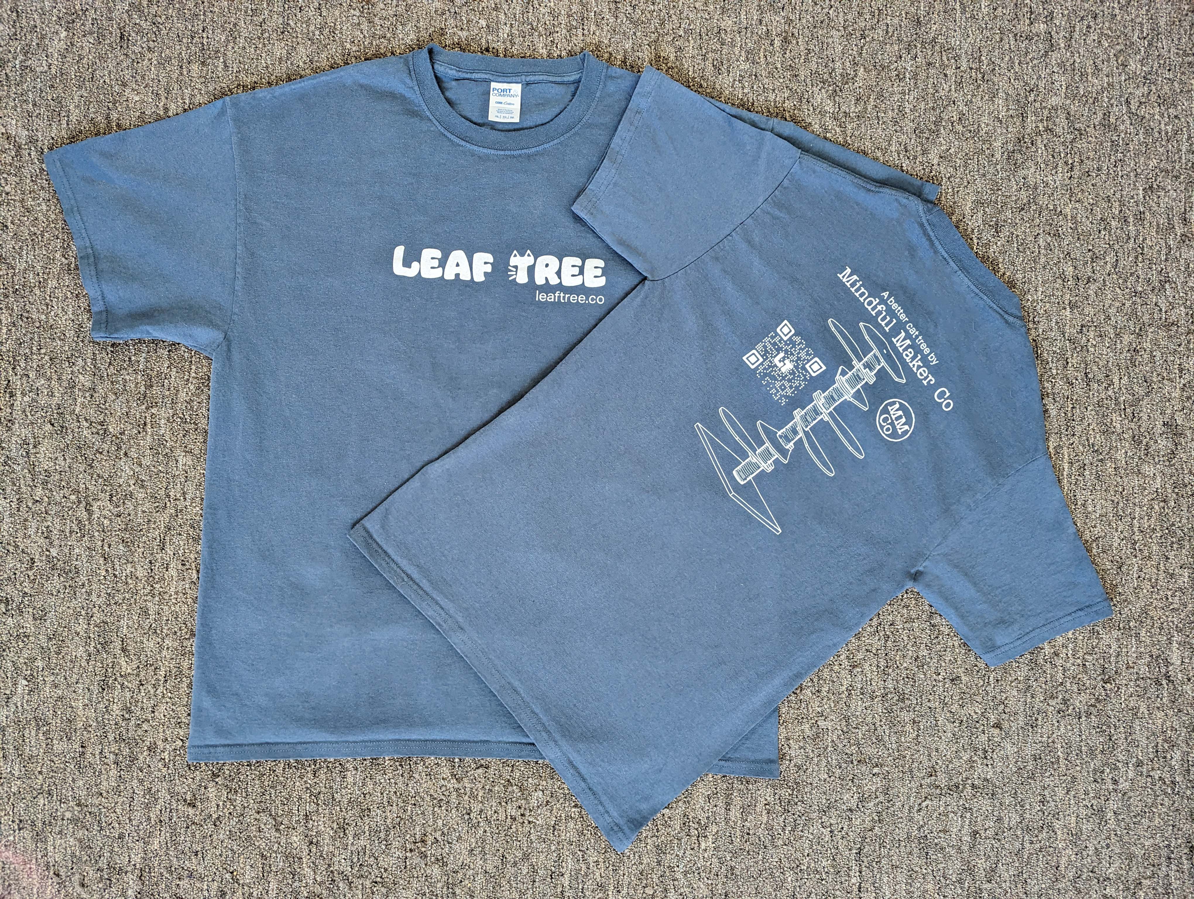 There are a few extra shirts because we had to purchase a minimum count to get them printed, so if there’s any interest in them, let us know! We could test a micro store through our wordpress site to get them to you, at cost, and test the feasibility of selling our Leaf Trees through our own portal here. If you email us, leaftree@gmail.com we will definitely see it and get back to you asap.