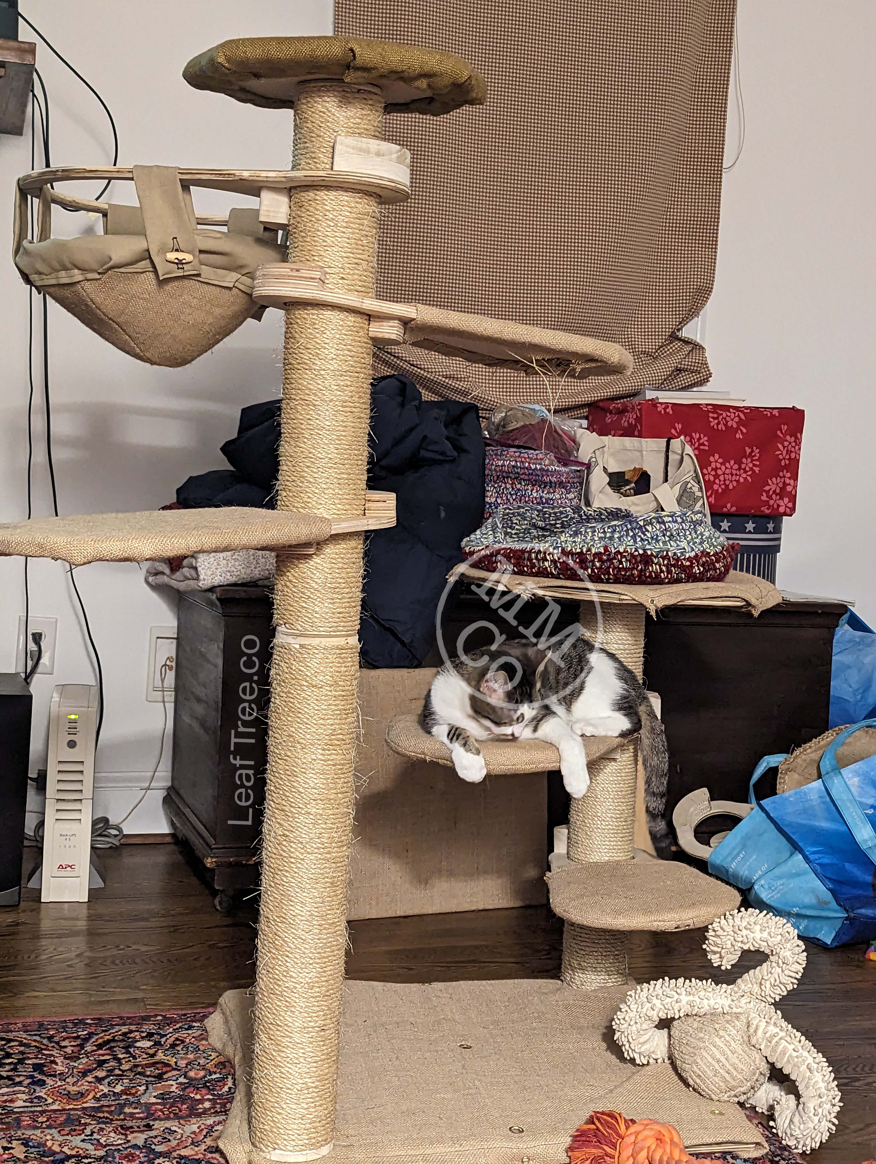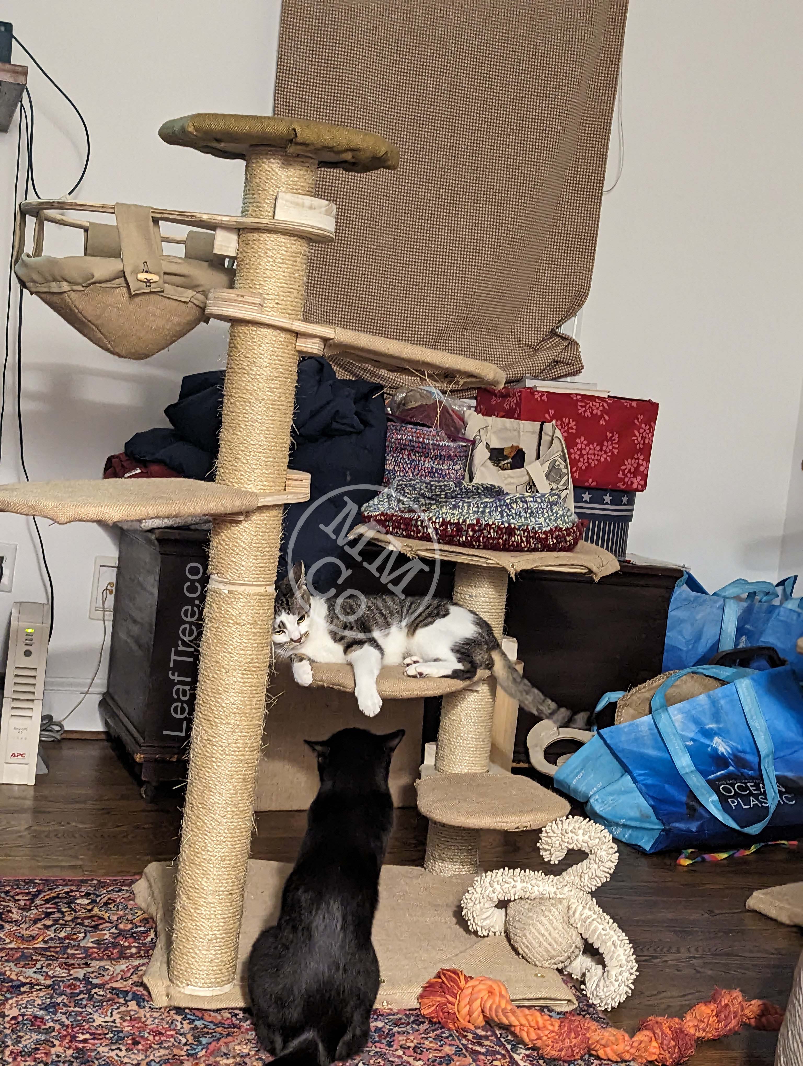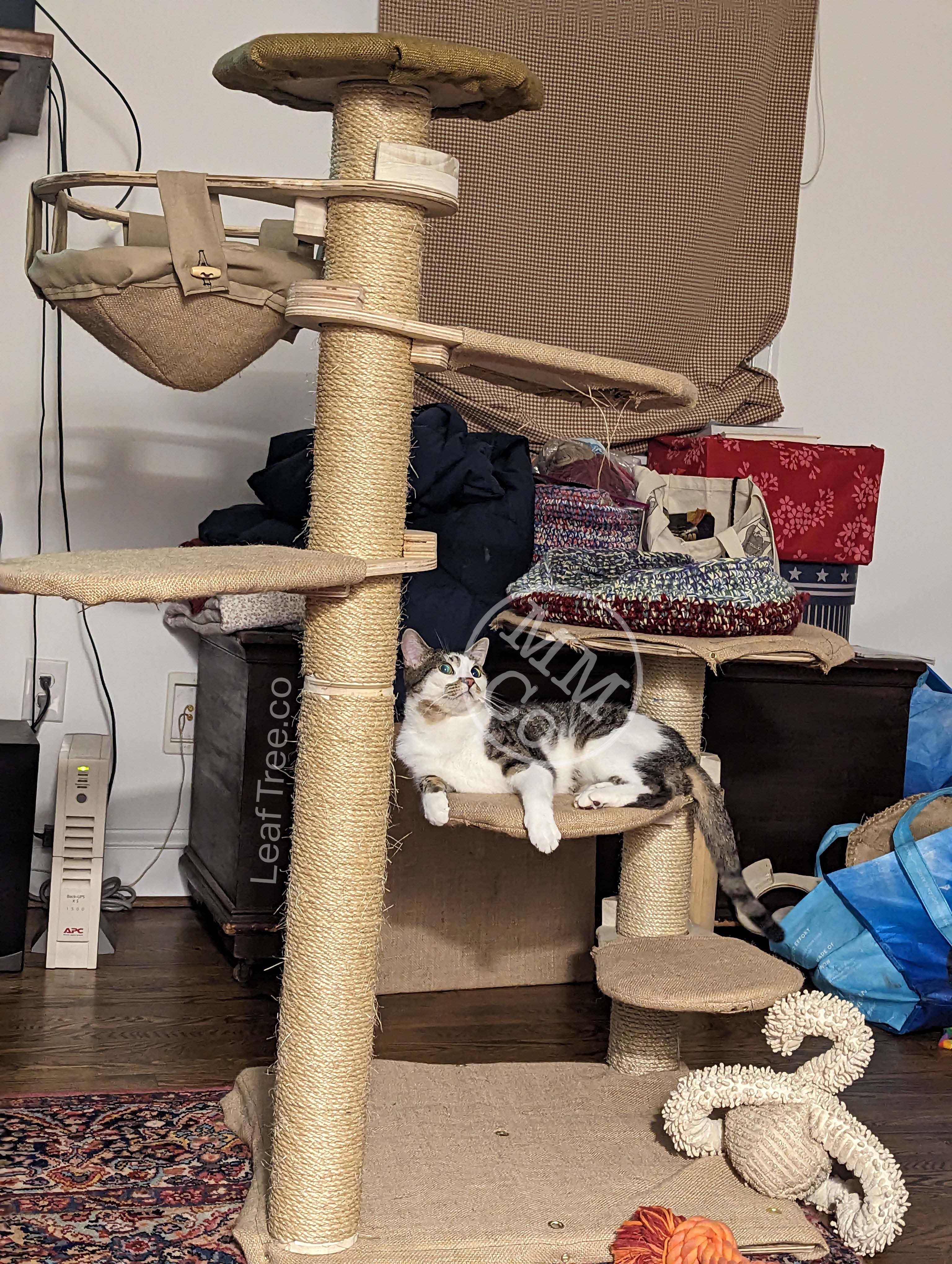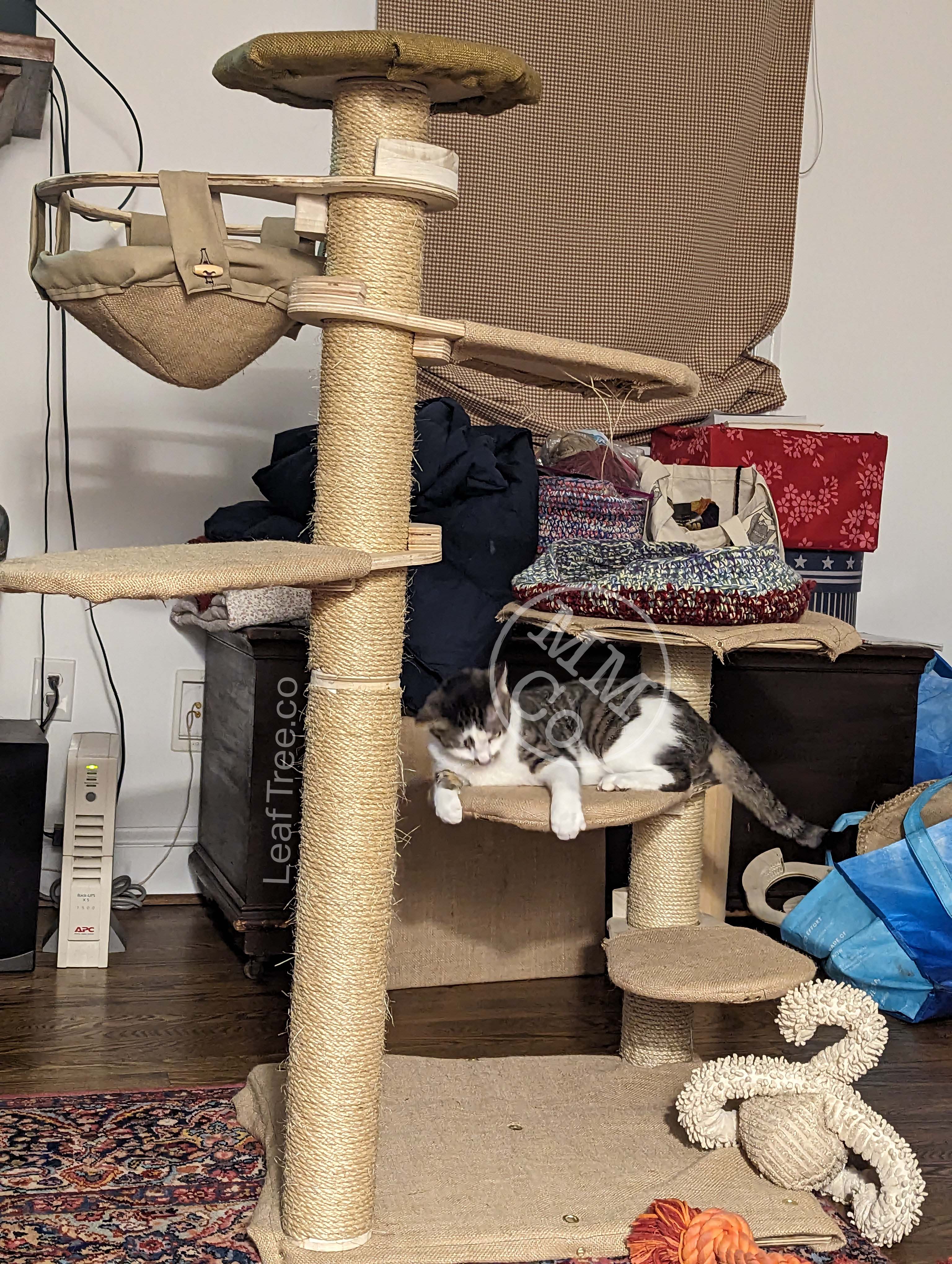 There are 9 anchor points in total, which could create a wild forest for a slightly smaller animal—potentially ferrets or rats—but with cats anywhere from 2-3 trunks at a time may still bring that “forest” feeling with enough space to maneuver leaves into a variety of arrangements.