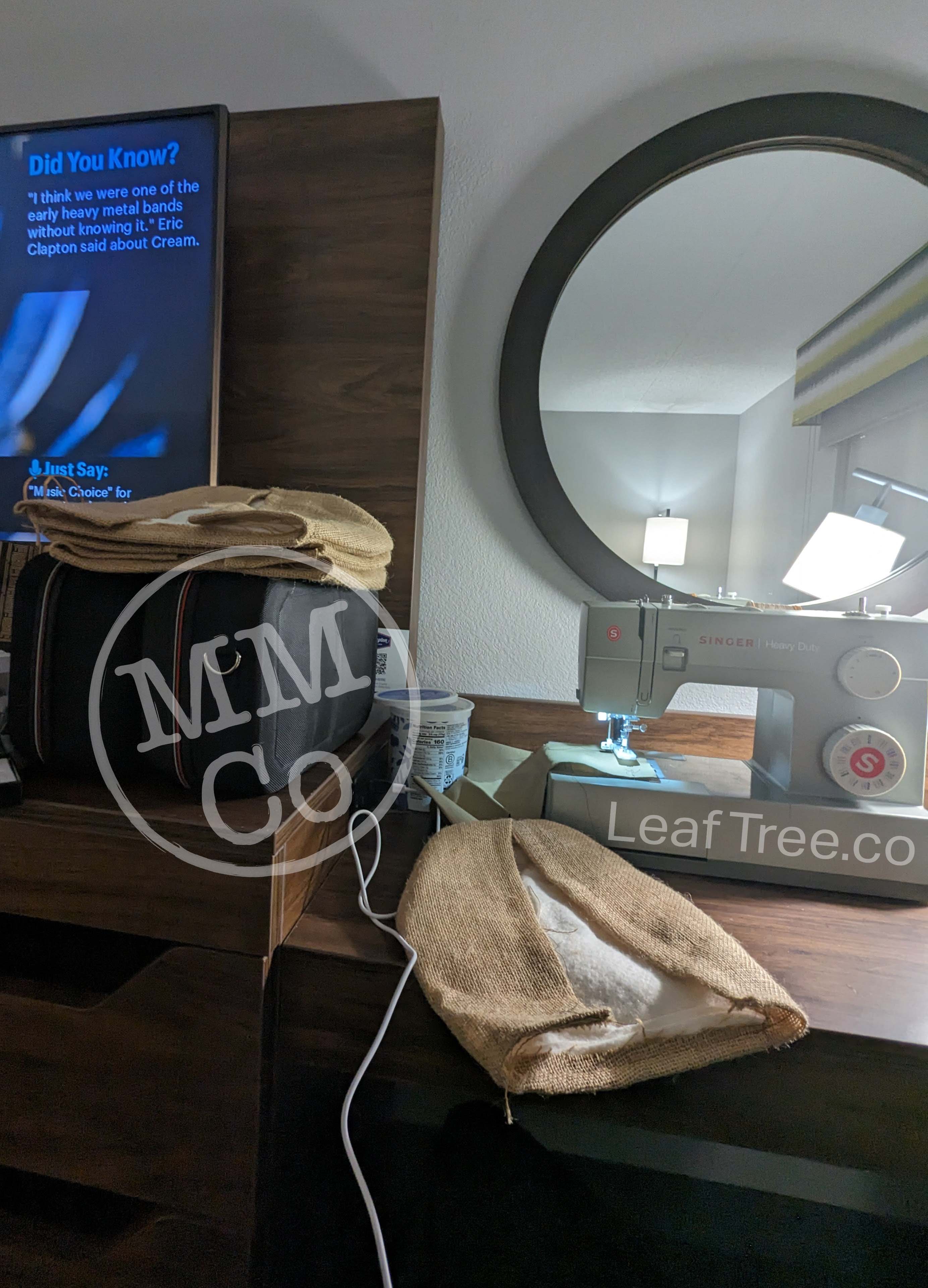 In preparation for exhibiting at Pet Palooza 2023, the inventor bulk-made lots of covers. The first round of removable leaf covers used metal grommets, but one of the goals with Leaf Tree’s design is to limit the variety of materials and parts used in its construction. In the spirit of this goal, we decided to use sewn button holes for this new set of covers. It takes slightly longer, but the final look is very natural.