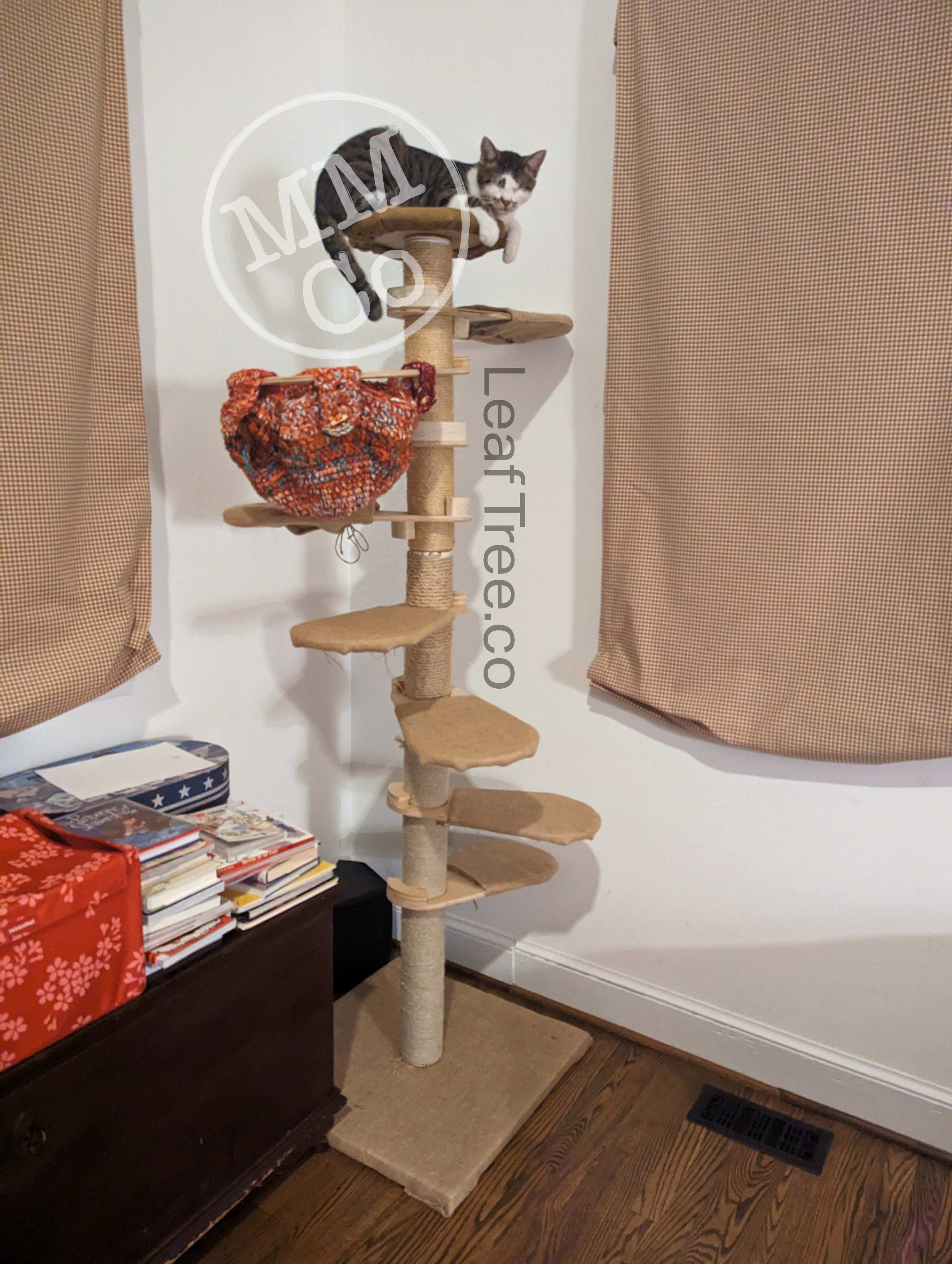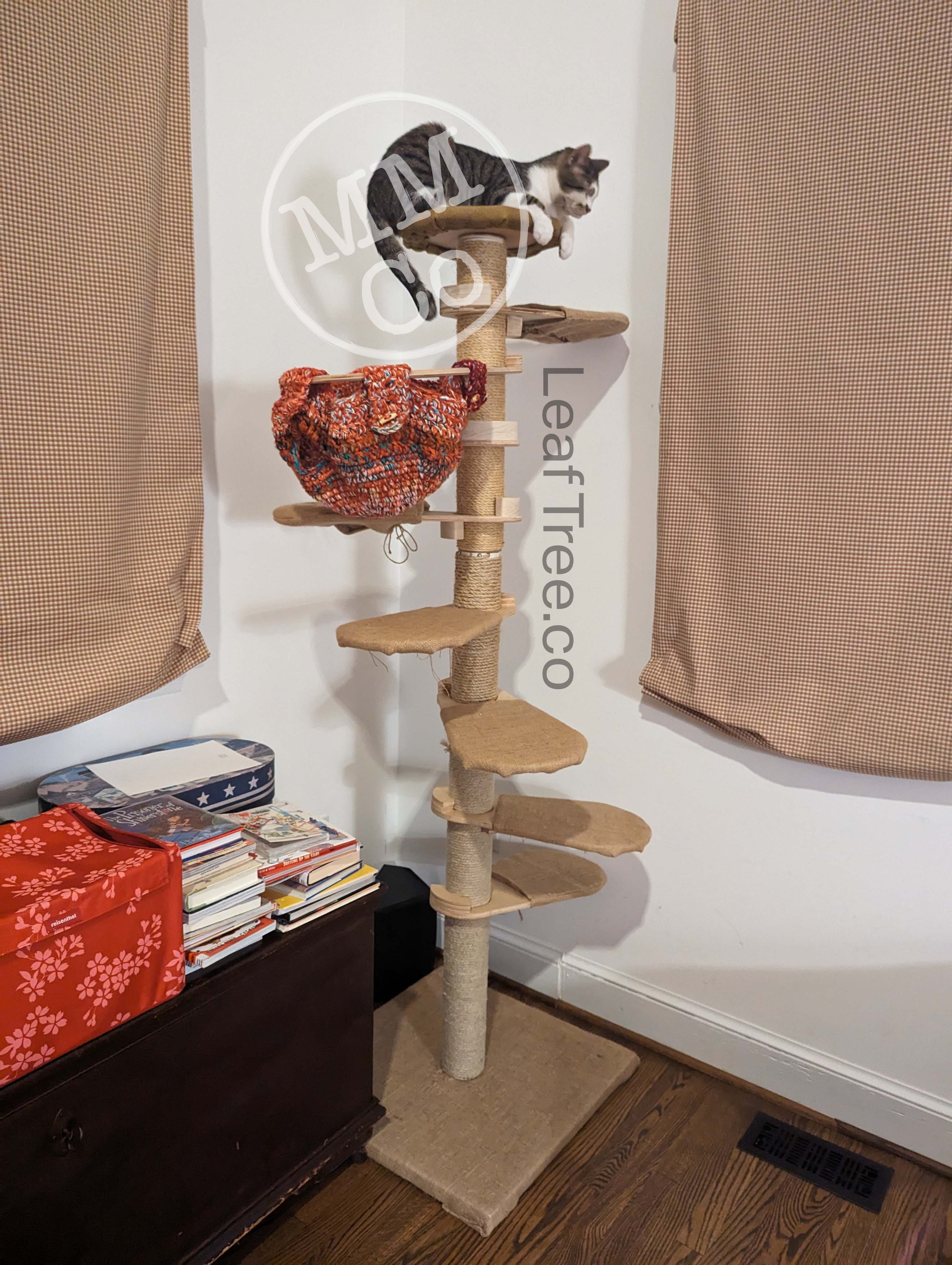 While the Tree Top is perfect for rambunctious play, it’s also great for dozing high above the action in the home. This tree top is a fair bit smaller than the version we’re working with for our most recent Leaf Tree version, but Cosmo really enjoys it!