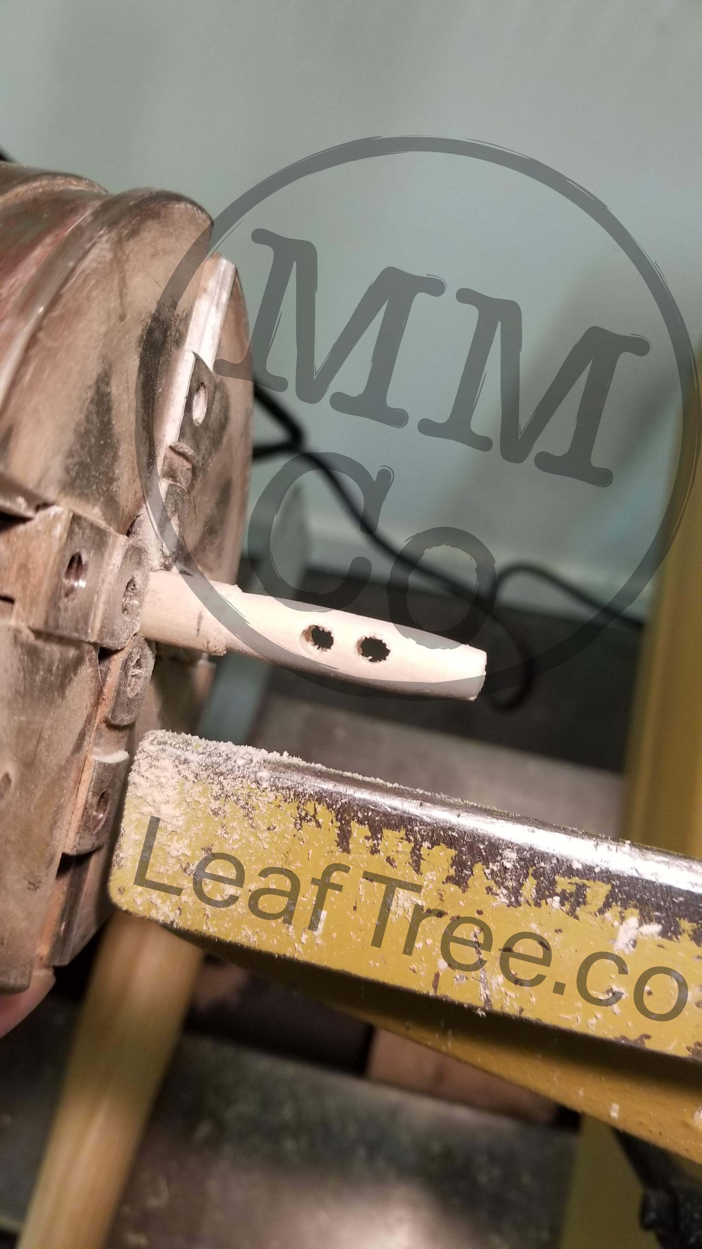 Wanting to make more hammocks, the inventor set out to make our own toggles. They were made using wooden dowels that were measured and marked for cut and hole locations; the holes were drilled using a drill press and a wooden jig with a v-channel cut into it clamped to the table, so when the dowel was placed in the v-channel it could easily be lined up with the drill bit and held securely during each cut. Then, the entire dowel length was put in a lathe chuck (with jaws removed) with the length of the first toggle sticking out. Then the toggle was turned to taper, sanded, cut off, and the dowel was advanced to the next toggle length to repeat the process.