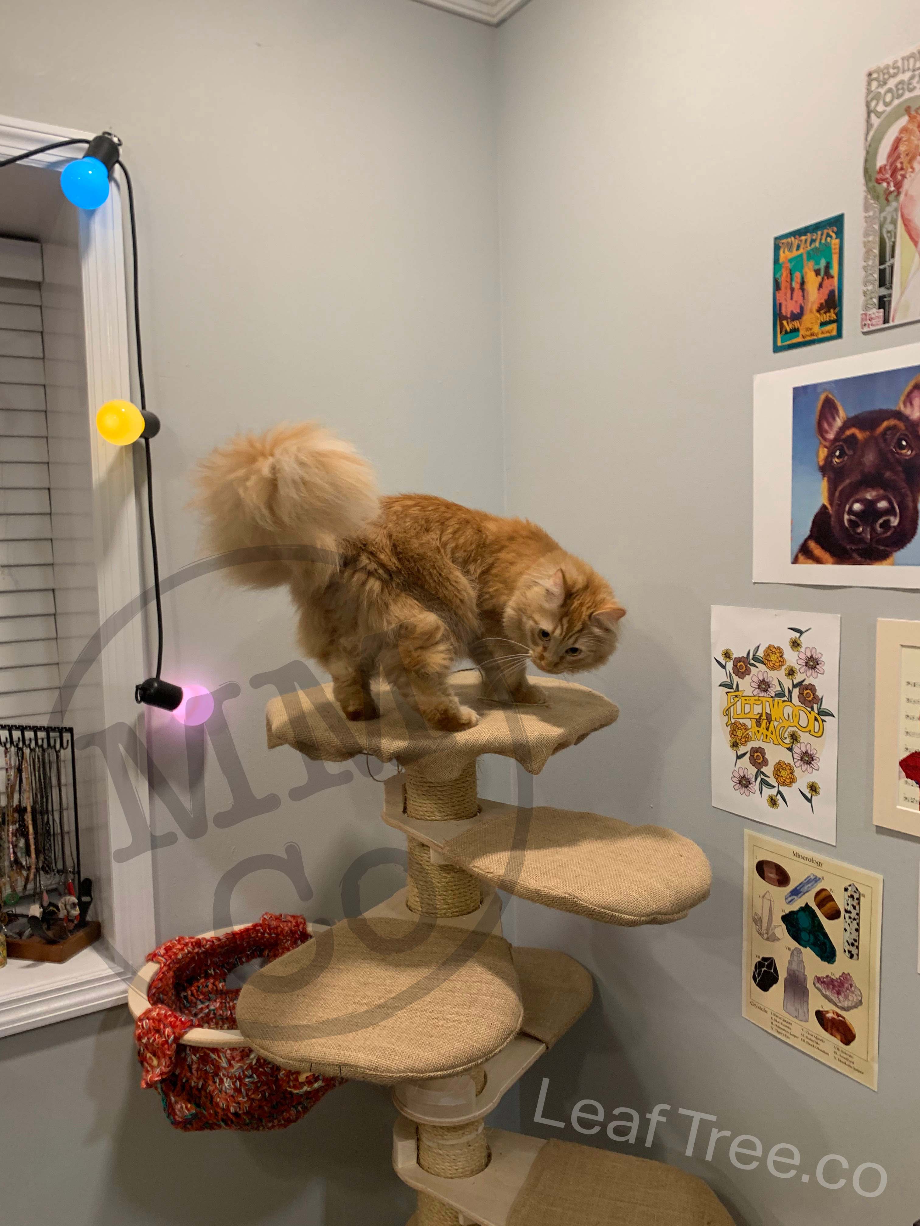 With all of the bulk parts-making that the Inventor has been doing, we were finally able to give a Leaf Tree Mk 2 to our third official product-tester, Walter! This Leaf Tree had to Travel all the way to Long Island and fit in a small apartment that is typical of the New York area, and it looks like it’s going well! Walter, having played on the Leaf Tree with Cosmo many times before, couldn’t wait for the tree to be fully assembled before hopping on and exploring! We’re excited to see how things go and share lots of cute Walt pics as we receive them from his supervisors.