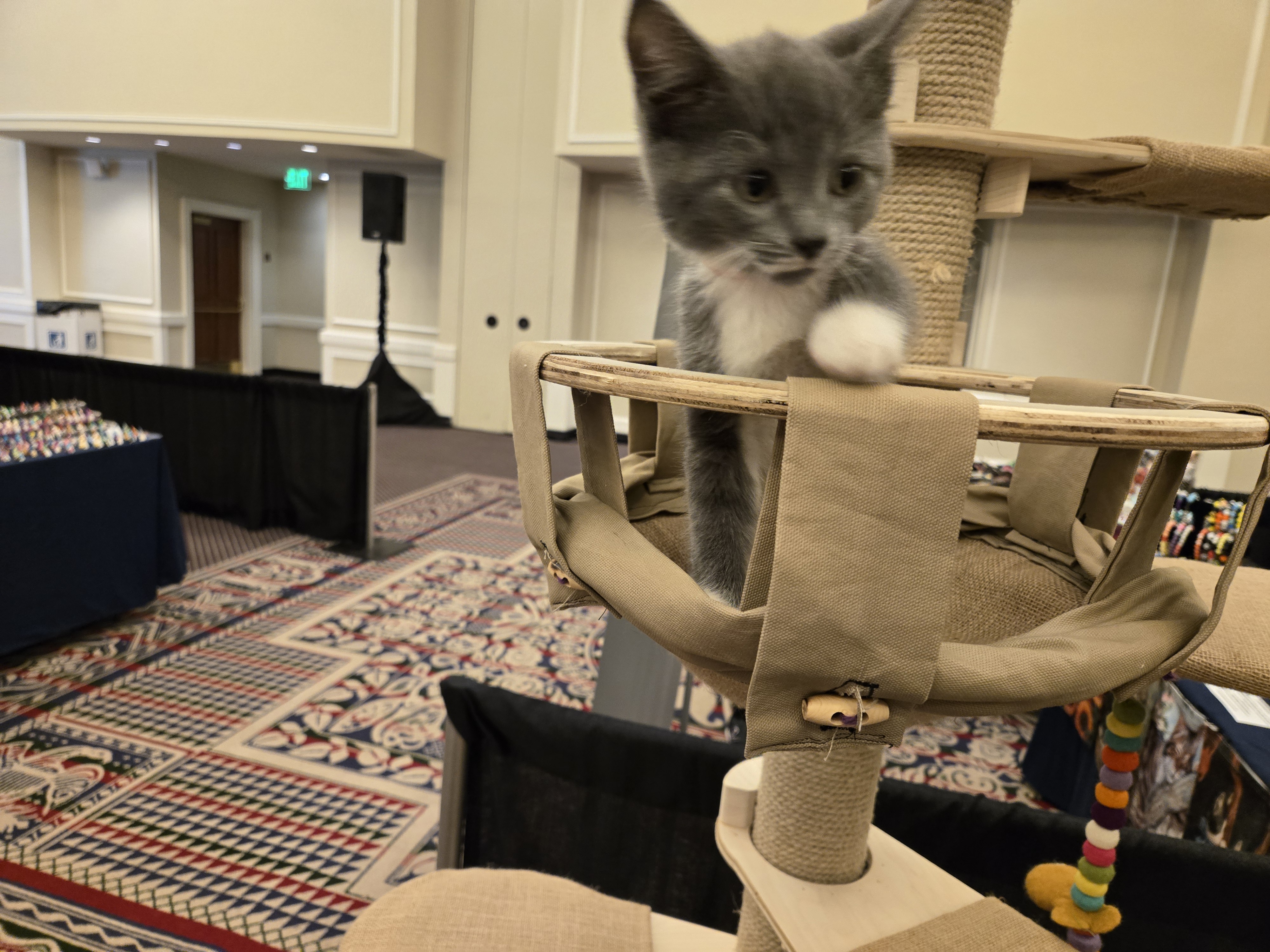 And we even got a visit from baby Baloo from the Critters 4 U Rescue – such a fast and curious kitten! It was super cute to see cats of all sizes trying out the Leaf Tree.
