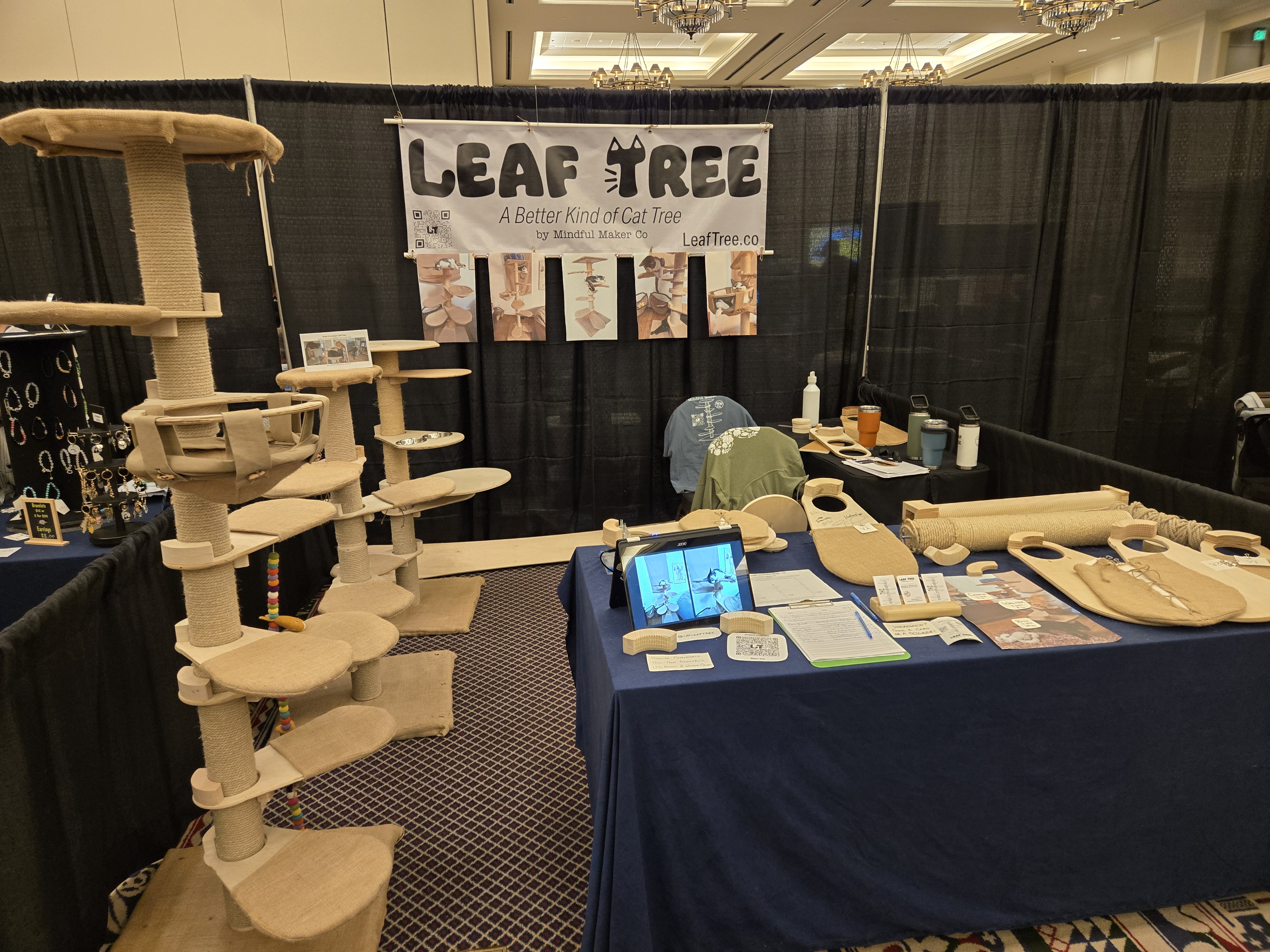 We had the purrfect booth neighbors Katie Cats Sims and Mila! Mila made a mad dash to our booth to check out our Leaf Trees and we had to coax her down to make it to her Meet & Greet on time. Thank you to Katie for the shout-out on her live, she was super sweet and supportive!